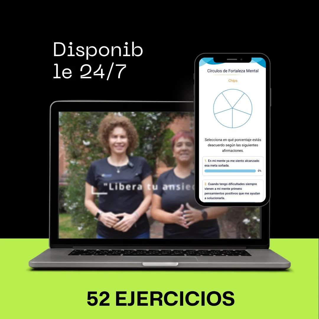 Acceso 24/7 durante 12 meses a todos tus ejercicios y herramientas exclusivas, desde cualquier lugar y dispositivo.